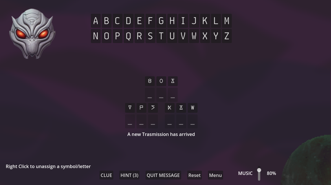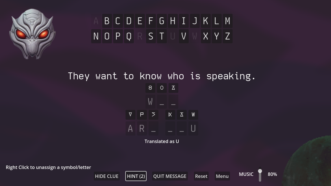 The Theme of the jam is "The world is watching" so it translates in the game as both the alien world watching to see if you can translate the texts, and the Earth is watching and waiting to see what the aliens have said.